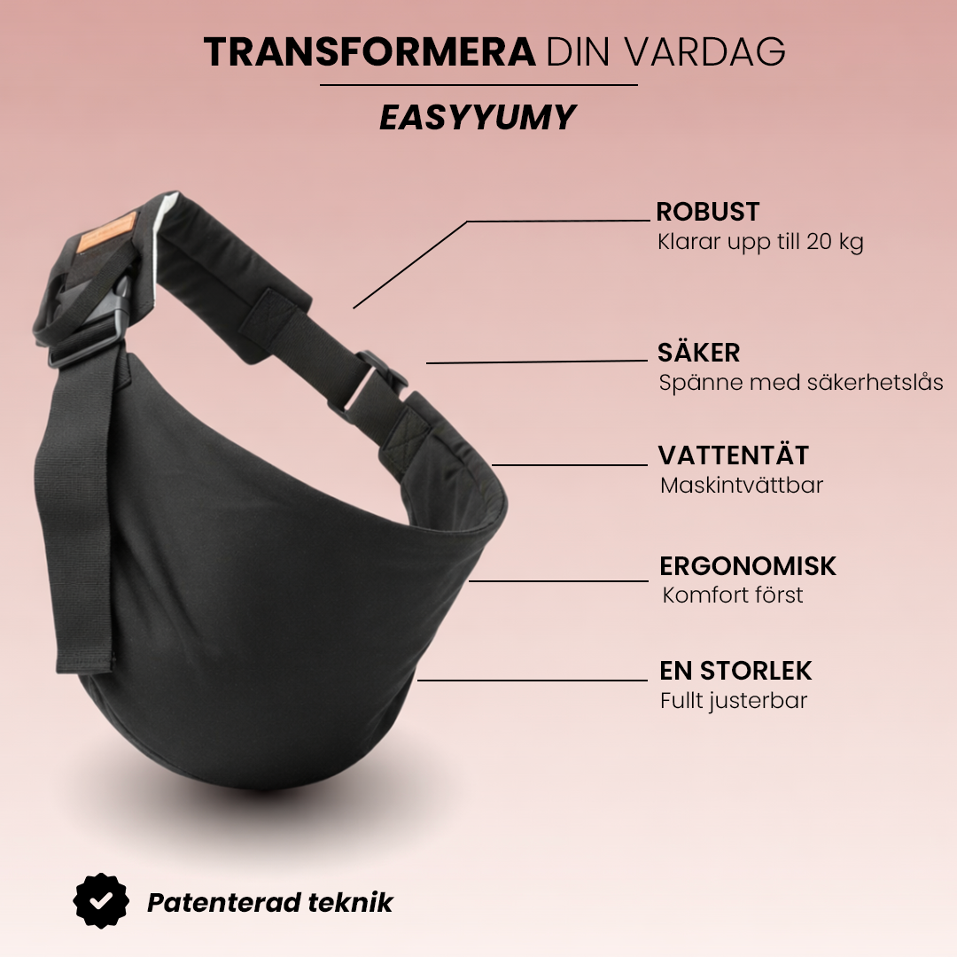 Tidigare var bärandet tidskrävande och skrymmande. Med EasyYumy blir det enkelt, snabbt och lätt – för att hålla ditt barn nära dig i full frihet.