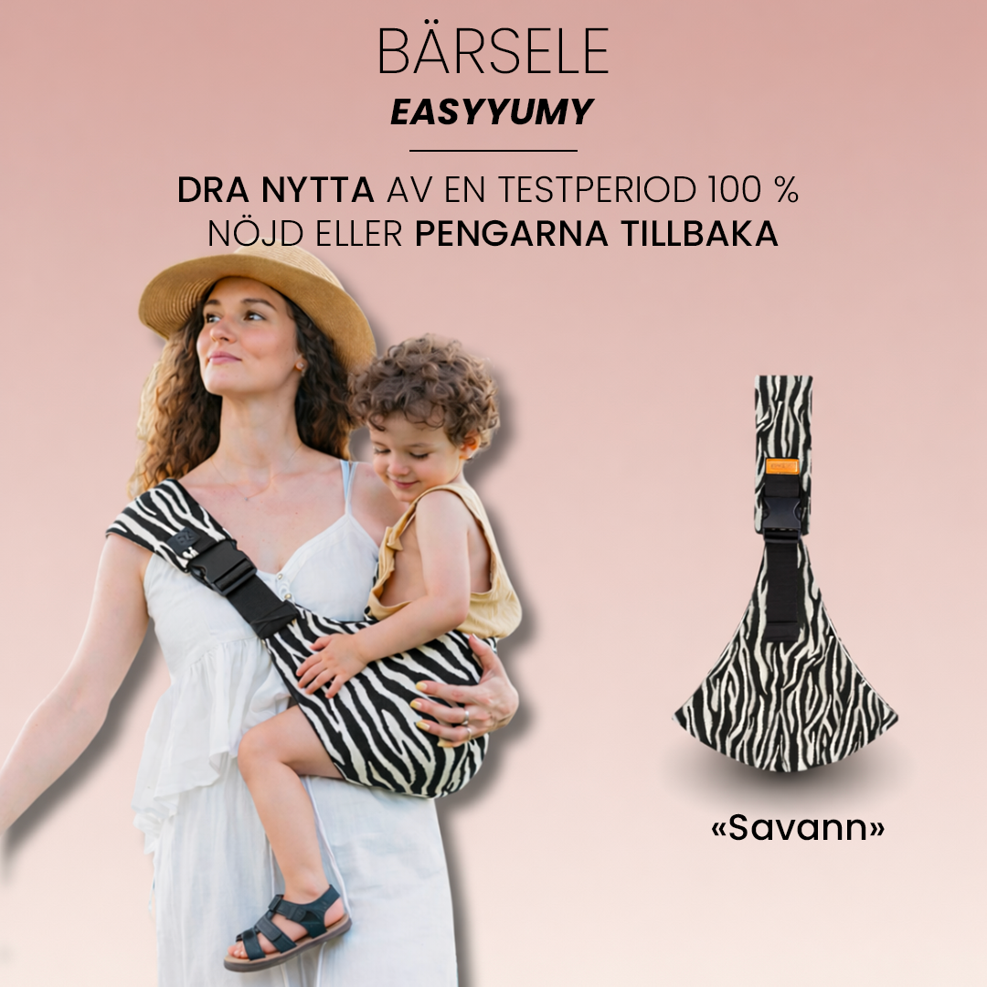EasyYumy är utformat för att ge barnet den närhet och ömhet som det behöver, utan begränsningar för föräldrarna. Det är enkelt och snabbt att använda och gör det möjligt att bära barnet nära sig på ett säkert sätt, samtidigt som du behåller din rörelsefrihet i vardagen.